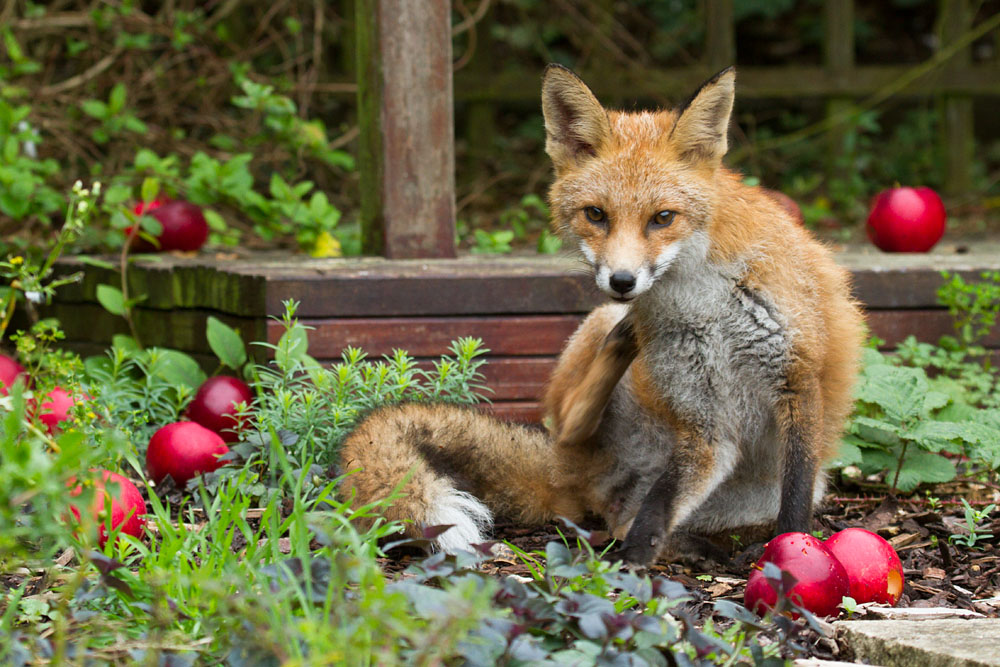 | 0610130510139577 | Young fox (7 months old) with fallen red apples in a suburban garden. | ||||||||||||