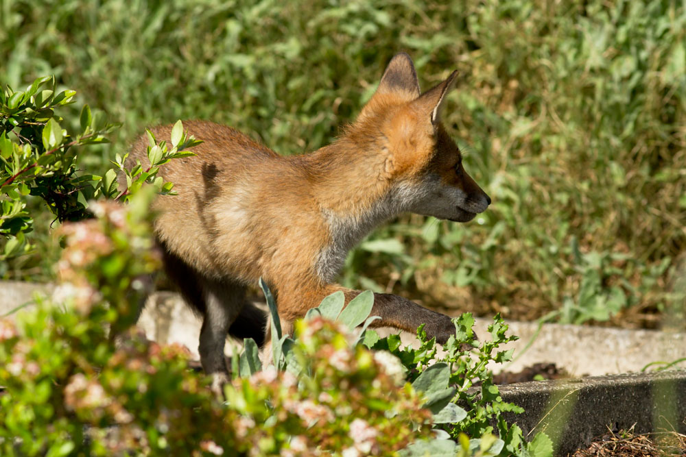 | 0804131606123668 | Fox cub (Vulpes vulpes) stalking in a garden on a sunny day. | ||||||||||||