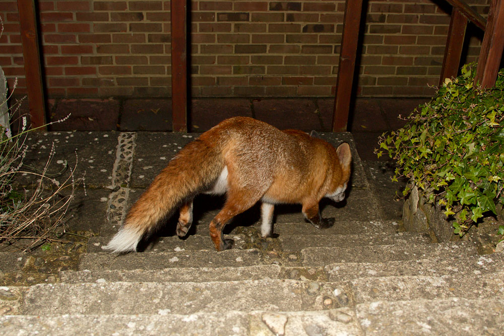 | 1111120811122865 | Adult male fox (Vulpes vulpes) going down steps in garden in East Sussex. | ||||||||||||