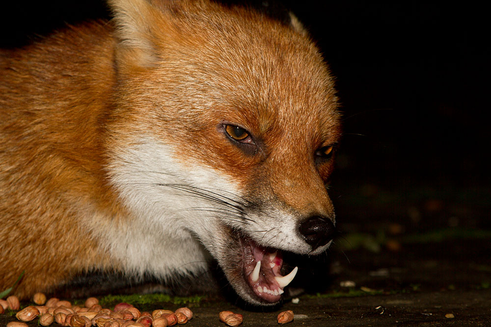 | 1811121611124127 | Close up portrait of male fox (Vulpes vulpes) eating peanuts in a suburban garden. | ||||||||||||